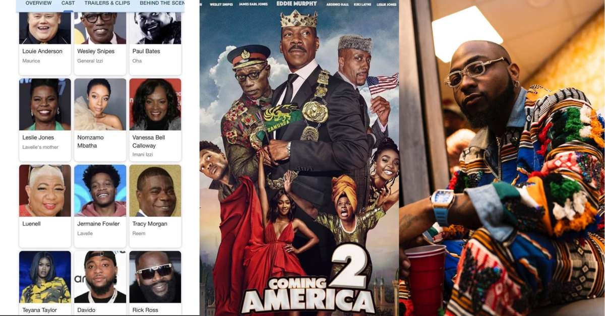 Nyota wa muziki toka Nigeria, David Adedeji Adeleke 'Davido' amerodheshwa kuwa miongoni mwa washiriki wa filamu ya "Coming To America" sehemu ya Pili ambayo inatarajiwa kutoka rasmi Disemba 18, 2020.